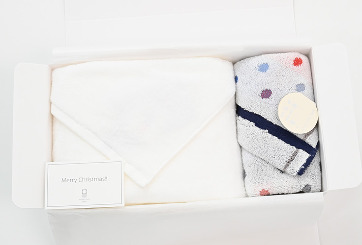 今治タオル公式オンラインストア・本店・南青山店にて期間・数量限定のクリスマスギフトが登場しました。 3種類の限定セットをご用意いたしましたので、ぜひ年に一度のプレゼントに今治タオルをご利用くださいませ。 【ホワイトクリスマスギフトセット2025】 羽毛のような柔らかさと軽やかな感触の”プリューム”のバスタオルと、多色の糸が織りなす色彩豊かなドット柄が可愛らしい”SDオプス”のフェイスタオルの、ホワイトクリスマスを思わせる白いタオルのみをセレクトした限定セットです。 ホワイトクリスマスをイメージした雪のように真っ白なタオルのギフトセットであたたかなひとときをプレゼントしませんか? 【商品ページはこちら】