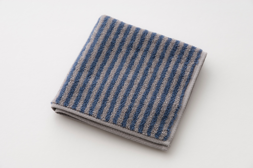 表はストライプ柄、裏は無地のシンプルながらもおしゃれでメンズライクなタオルハンカチです。程よい厚みのある柔らかさで、吸水性にも優れているため、すっと水や汗を吸い取ってくれます。