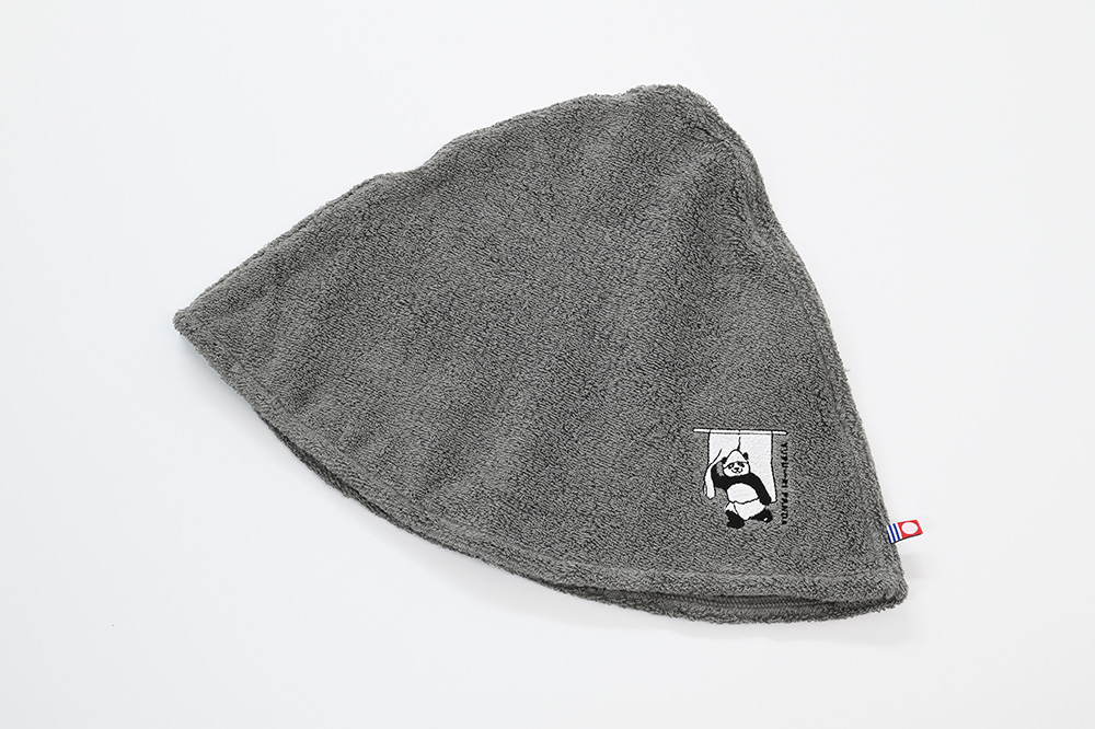 のれんをくぐるサウナハットをかぶったパンダの刺繍が可愛い今治タオルのサウナハットです。大きめサイズなので深くかぶれ、熱と乾燥から髪と頭皮を守ってくれます。洗濯機で丸洗いできるのでお手入れも簡単で衛生的にも安心です。また、洗濯ネットを使用することでふわふわ感が長持ちします。