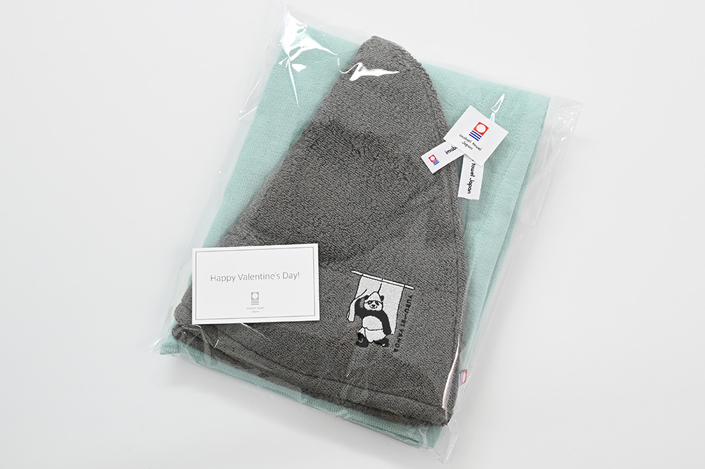 公式オンラインストアにて期間・数量限定のバレンタインデーギフトをご用意いたしました。こちらは、パンダの刺繍が可愛い、深くかぶれる大きめサイズの”ゆる~りパンダ”のサウナハットと、コンパクトサイズで持ち運びにも便利な”ガーゼ&パイル”のコンパクトバスタオルの限定セットとなっております。