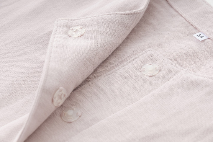 綿100%、ダブルガーゼ素材を使用したやさしい肌触りのワンピースパジャマです。薄すぎず、厚すぎない、丁度いい素材感でゆったり着心地のいいシルエットに仕上げました。部屋着やパジャマなど、おうちでリラックスした時間を過ごしたい方におすすめの1枚です。